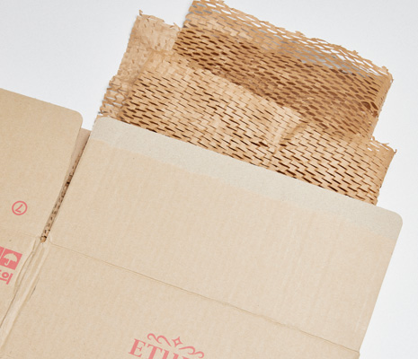플라스틱 비닐 소재의 포장재 대신 FSC 인증을 받은 종이 포장재와 박스를 사용하여
